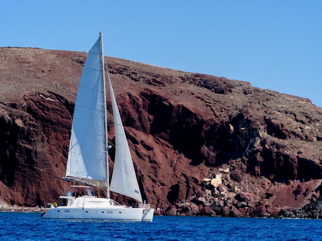 The exploration of Santorini through a sailing cruise will show you another perspective of the caldera while sailing across the sparkling waters of the Aegean Sea. Our Day Cruise begins from the port of Vlychada. We sail close to the Red and White Beach, the Black Mountain and the venetian Light house in Akrotiri, exploring the volcanic area, where the spectacular colors will amaze you. While heading towards the Hot Springs, you will feel the energy of the Volcano and the spirit or the island. Next stop is Thirassia, a fishermen’s island, ideal for swimming and snorkeling. Admire the unique view of Manolas village and taste a delicious lunch which is served on board. The cruise ends in one of the most amazing spots in Santorini, the old port of Ammoudi in Oia. The tour included is semi guided with a maximum of 16 passengers. You may inquire for a more private option as well.