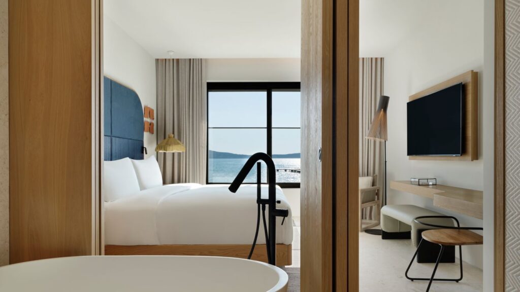 W Costa Navarino marks the debut of the W Hotels brand in Greece. Set beachfront by the Ionian Sea in Navarino Bay, the new Escape, tailored for adults and young adults 12+ years old, opened in the summer of 2022 to infuse the Costa Navarino experience with inspiring energy and a fresh perspective, while also linked to the waterfront Navarino Agora marketplace.